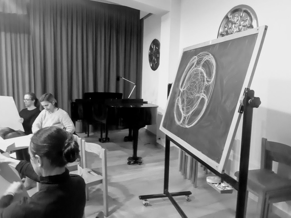 Ho avuto il piacere e l’onore di partecipare alla realizzazione della mostra – Le Forme della Qualità- presente a Milano da ottobre a dicembre 2019, realizzata grazie all’impegno della Fondazione Antroposofica Milanese e ideata e curata da Emilio Ferrario. Mi sono immersa in ciò che da molto tempo avverto come impellente ricerca personale sia come artista che come antroposofa. Raccontando della mostra ho percepito la necessità di offrire una esperienza preparatoria al visitatore, per non cadere nella banalità di cercare solo conoscenza intellettuale nell’ “incontro” con i metodi per immagine. Offrire l’esperienza di Disegno di Forme, ( antica arte medioevale, arte longobarda coltivata in scuole a carattere iniziatico) come preparazione alla visione della mostra, pone il visitatore in un atteggiamento di coscienza particolarmente attivo, sperimentando in primo luogo in sé, il significato della parola Qualità.