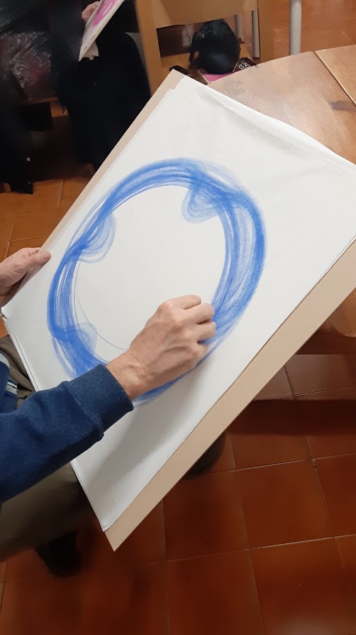 Il foglio come spazio infinito, la mano disegna con la grafite una circonferenza. Il respiro è calmo e il fruscio del segno si fa quieto ritmo. Per mano nostra lo spazio si divide in -dentro- e -fuori- …